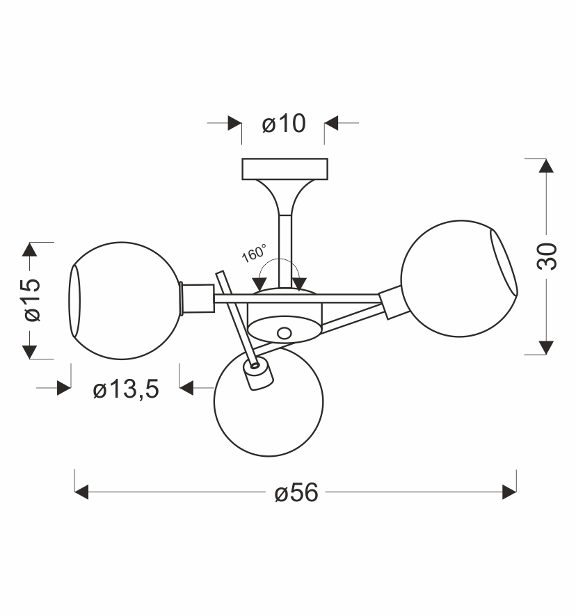 Mõõdud: 30x56x56 mm Karbi suurus: 43x43x18 Sokkel: E27 Lumen: IP klass: IP20
