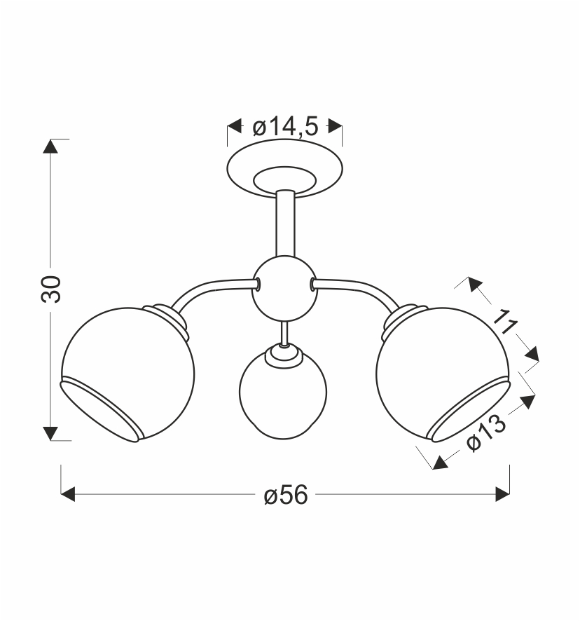 Mõõdud: 30x56x56 mm Karbi suurus: 35x40x24 Sokkel: E27 Lumen: IP klass: IP20