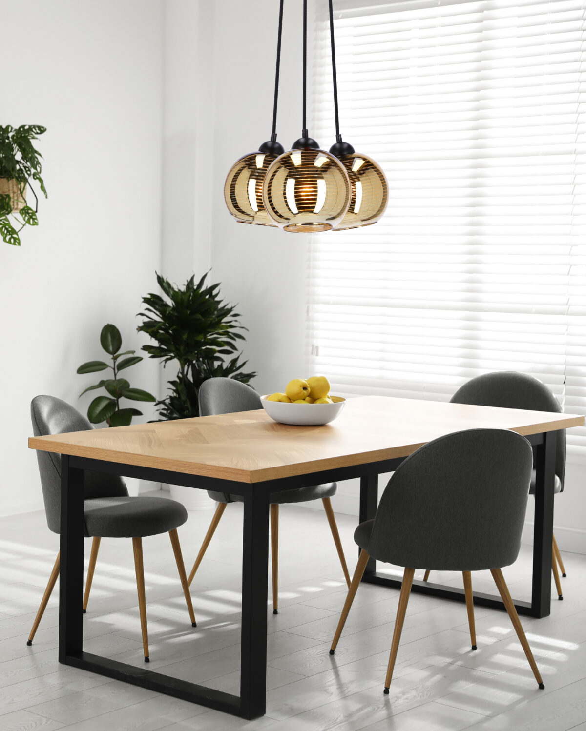 Trio rippvalgusti must 3x60W E27 kuldse Kuppelga