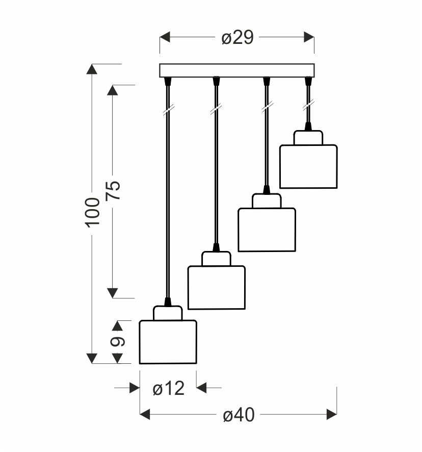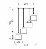 WAMA rippvalgusti 4X40W E27 must kuppel+hõbe